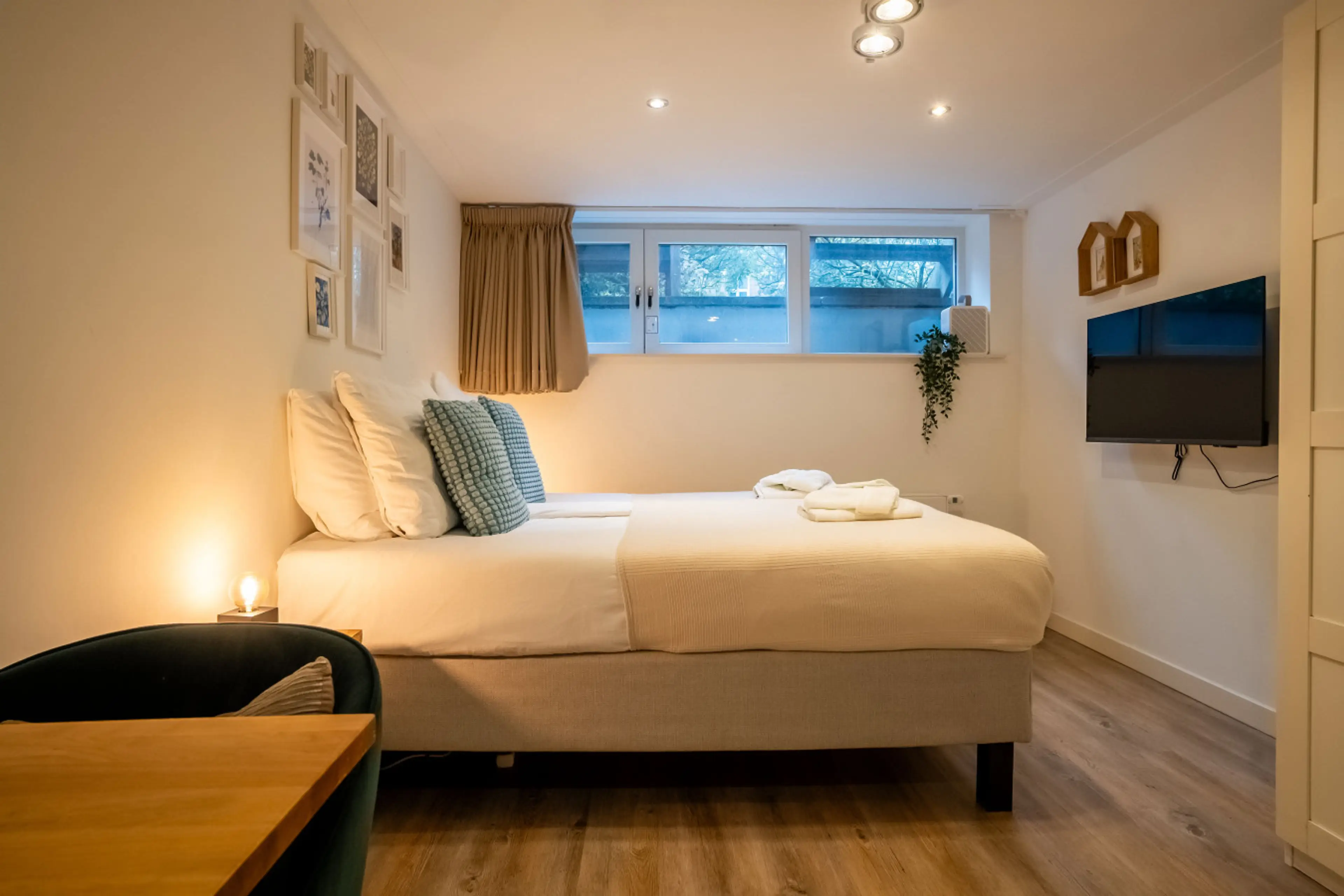 Welcome to Our Cozy Amsterdam Studio on Nassaukade Welcome to our stylish studio apartments, perfectly situated on the Nassaukade in central Amsterdam. Ideal for couples or solo travelers seeking comfort, privacy, and a touch of city charm. Each studio features an en suite bathroom, a comfortable b...