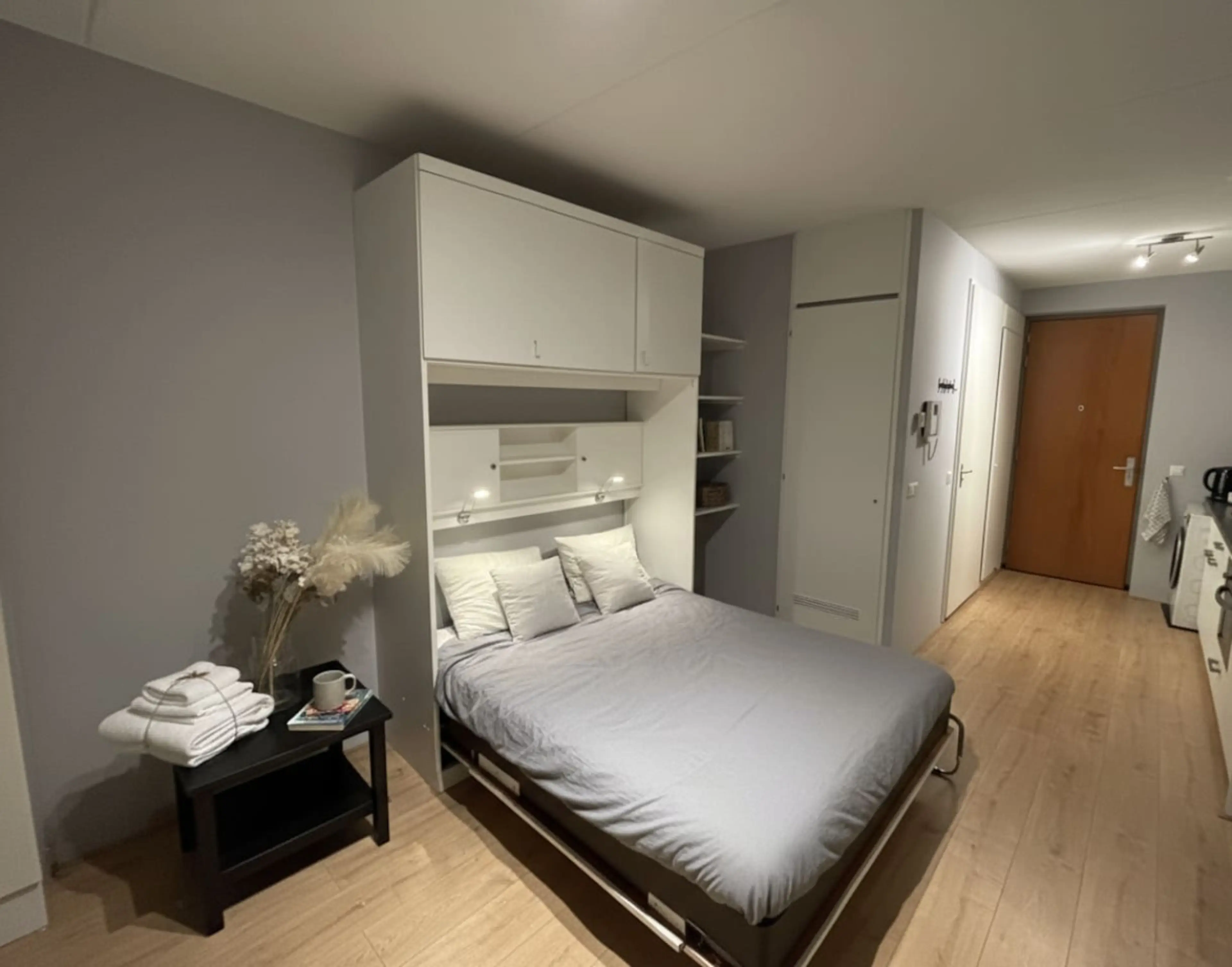 Rustige, lichte studio met groot balkon aan de Welnastraat. Gelegen in een modern complex met groene binnentuin. Voorzien van een comfortabel tweepersoonsbed, eettafel, veel kastruimte en een complete keuken met oven, kookplaat en wasmachine. De frisse badkamer heeft een inloopdouche. WiFi is aanwez...
